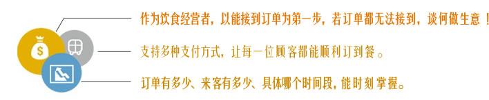 店家可在网上展示餐厅/酒店的所有预定包间信息、菜品信息、节日特定套餐、就餐环境、车位预定信息、配套娱乐服务等顾客关心的内容。食客只需要在网上进行简单的操作,就可以预留指定包间、提前点菜品、预留车位等,充分满足公务宴请、商务宴请、家庭聚会等对餐厅包间有特殊要求的需求。